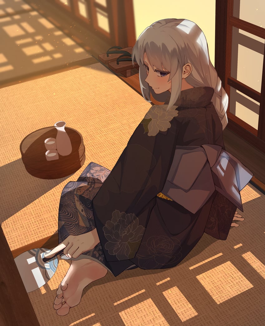 Мягко качнувшись, она завела стопу вправо, словно оспаривая границы напарницы. Слегка привстав на носочки, мечница перенесла вес, клонясь будто тело парило, устремившись в одну конкретную сторону, выбранную желанием лучницы. Приподнятая и согнутая плавной дугой рука, чуть выгнутая спина и выпрямленные, частью напряжённые ноги — желая повторять движения Эйрин, мечница старалась оставаться на одном уровне с девушкой, не вырываясь вперёд и не отставая пока травница не решила поставить точку, последнюю ноту их танца оканчивая движение красным росчерком. Словно выйдя из транса, хранительница развернула ладонь, сплетая её с ладонью Эйрин. Несколько мгновений она будто впитывала ощущения, даримые этой связью, а после, слегка оттолкнувшись рукой, шагнула назад, освобождая пространство Ююко. Беззвучно кружась вокруг невидимой оси, девушка скользнула к краю футона, к искусственному ограничению за который не дозволялось заступать. Поворот, ещё один. Подтянув полусогнутую ногу, она прижала подошву стопы к точке над коленом, скрещивая руки над грудью. Приняв позу, она замерла, выжидая несколько мгновений, а после, медленно опуская голень, выпрямила спину, неподвижно наблюдая за танцем розоволоски.