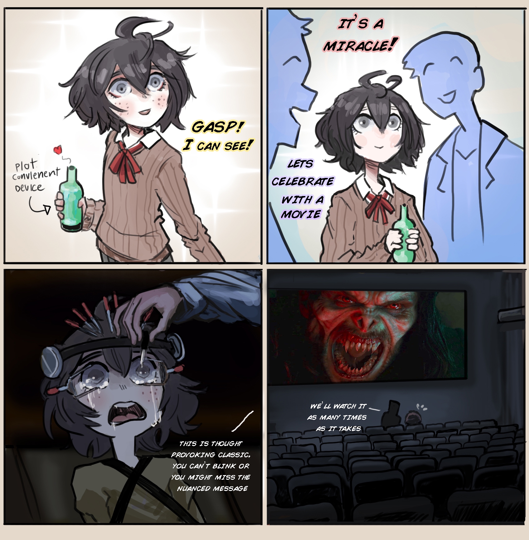 Показательный пример того, как аниме понижает уровень асикью хотя может, лично ты изначально был тупой. Даже исследования проводили, на неплохой выборке и сроки приличные, но нет, вам надо получать лёгкий дофамин, просматривая яркие контрастные картинки без смысла и содержания. Ты осознаешь, что принципиальной разницы между тобой и кайфожором-мефедронщиком нет? Те же убитые рецепторы, то же отупение, та же утерянная сенситивность и проебанные возможности.
