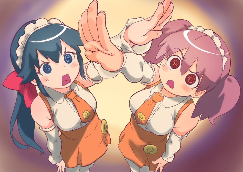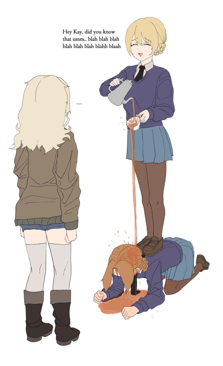 Одна тян на стуле смотрит как другая тян букает букздой куна же типо. И - инверсия.