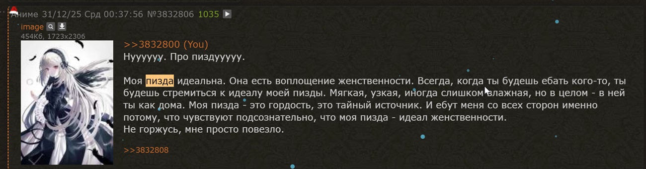 >>3830089 Согласен с умной сказал как отрезал Я думал ты меня старше а ты ещё не скуф, да? Готовишься только таким стать да, вкурсе, что скуф – кринж слово >>3830093 В войсике бы оформил с тобой схожий завтрак >>3830094 При чем тут оперция по смене пола... Ты контекст не знаешь, бака! А реквест мне нрав >>3830090 Хочу эстетическое!! Вот новогодняя вышла эстетическая. А размер груди бедер мышц не важен. Можешь даже сделать её эйджед даун с нашим любимым нелюбимым сабжем и я такой я не согласен с вашими ляхами но готов умереть за ваше право рисовать их У мя деверь работает на нефтянной вышке столько зарабатывает. Моя сестра из за этого ходит в 35, как в 15, но не луксмакксит. Ты тоже можешь найти своему брату деверя на нефтянке. Итт таких только Сато он не по Умным >>3830095 О, ты любишь психопатическое рисовать ну конечно ты психопат нарисуй иллюстрацию на тему 6 000 000 рождественских печений >>3830100 Психопат боится психопатического контента >>3830092 Бро оформляет мне давку 💀 Ноль тряски, не волнуйся Хотя, тебе не нравится мой новогодний джолли эмоциональный фон?!?!! Ты того совсем, не любишь ни Христа, ни Клауса, ни Мороза, ни Христа второй раз??? >>3830097 Это Шатр-няшулий :3
