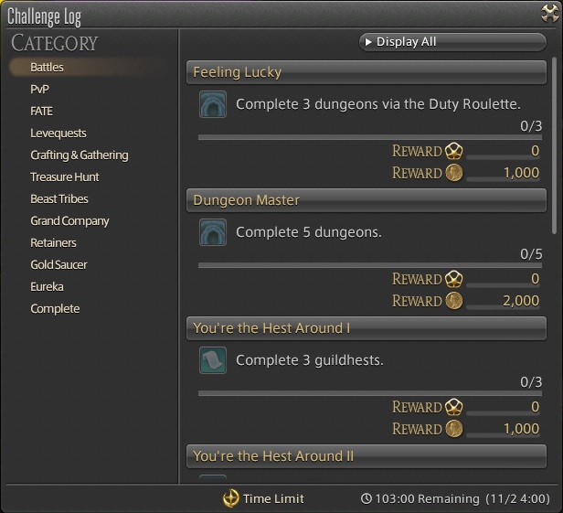 Lv. 1 - 50 Levequests, guildleves, and hunting logsclasses/jobs.