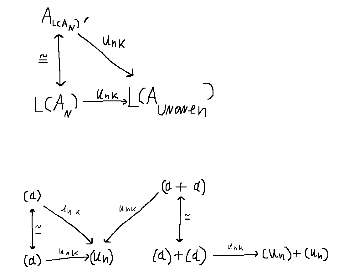 Поразмыслив над этим всем я понял, что изоморфизмы у нас могут быть очень разными - те самые специальные - но так-то в данном случае, если не ограничиваться или не брать только специальные, то чуть ли не что-угодно у нас изоморфно между собой. Собственно, говоря про классический цикл, он у нас должен задаваться относительно каких-то изоморфизмов. В данном случае я говорю что я беру сумму и беру её как одну букву, если принадлежит она к одномерной полугруппе, после чего беру unk и беру unk у непосредственно порождающего элемента этой полугруппы. Если это многомерна, то нахожу изоморфизмы к конечной сумме из тех букв которые были бы элементами одномерных полугруппы при этом эти букв были бы бесконечными суммами. Ну и следовательно дальше я беру unk и получаю конечную сумму unk и дальше я беру unk у любой такой конечной суммы состоящий из один раз повторяющихся порожденных элементов. Как можно заметить я в классические циклы не вставил бесконечномерные циклы, т.е когда сумма букв из одномерных полугруппы конечна а не бесконечна, но можно и говорить и за бесконечную сумму тогда тоже, да. Ну и да, все конечные суммы очень легко переводятся просто через Abel^(-1)(Abel(Semi-Group)\[(c)+(c)+...+(c)~c])