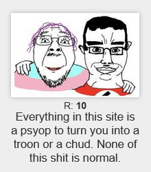 Да нет чувак тебе прост самому неизвестен концепт дружбы и все эти твои кукареканья о том что лисотредовские долбаёбы обсуждают только пенисы это проекции. Ты девочка сплетница которая полагается на свой старческий нормиблядский опыт.