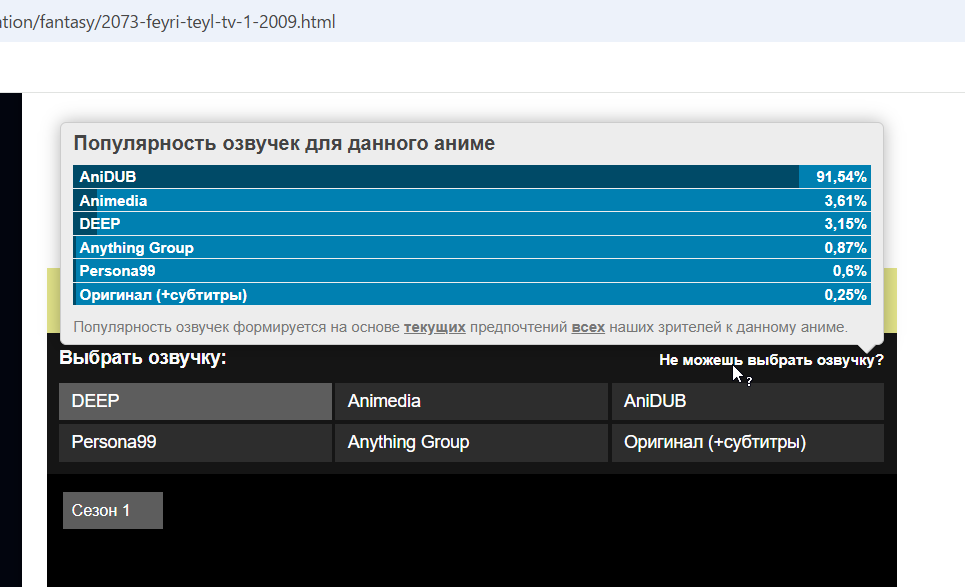 >>7934763 На ХДрезке вроде все сезоны и фильмы. Но выбор анимы, зазаза сомнительный, разве что именно "заценить". Буквально уровень озвучки мультсериалов из 90-00х, когда просто начитывают тест с выражением.
