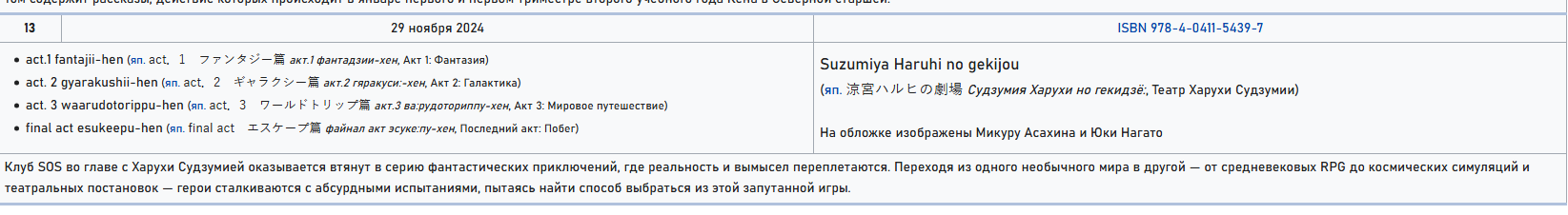 Может быть, я туплю, но я так и не понял, к чему всё пришло в финале? В ранобе, в манге или ещё где-то?Всё же ГГ стал встречаться с Харухи? Была-ли какая-то романтическая линия? Или нет? Чем всё закончилось?