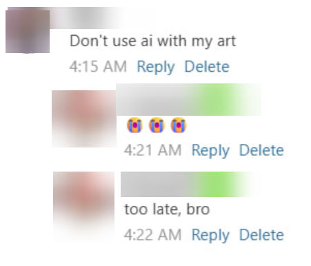 Сделал ИИ-анимацию на основе его арта, просто так, для людей. И сразу налетел "Не юзай ИИ на мой арт". Тьфу, обиженка. И прикол в том, что на его потуги могут такие же ущемленные налететь. КОКОКО, ЗАПРЕЩАЮ ИСПОЛЬЗОВАТЬ ИИ НА МОИХ РАБОТАХ!!! РЯЯЯ, ЗОПРЕЩАЮ!!! ПУК-СРЕНЬК.