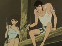 Из деталей, порадовал бэдэсс-Зенигата, пусть и регулярно облапошивающийся, но имевший возможность показать себя с лучшей стороны. А Люпен носит красный пиджак из ТВ-2, но рубашку и галстук из ТВ-1.