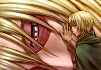Лучше быть титаном Эрена, чем повозкой или челюстями. Плюс мы не знаем у бабы титана способность кристаллизации врождённая или от капсулы как ту что эрен сожрал с бронёй которая была.