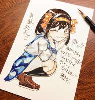 Да и в целом, не заметил я, чтобы Харухи была какой-то кавайной школьной суперзвездой. Скорее уж школьной ебанутой, от которой стоит держаться подальше, чтобы чего не вышло. Словечко "грубая" в мыслях Кёна по тексту мелькает неоднократно.