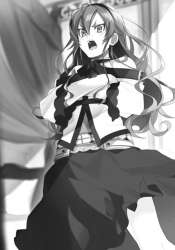 But then… “Huh?” Maybe it was just my imagination. I thought I saw something out of the corner of my eye. But when I turn around, there’s nothing there but trees. “What’s wrong?!” “Sorry. It’s nothing.” Jeskan casts me a glance, but I must have been seeing things. There’s no time to dwell on it right now, so I tell myself I imagined it and keep on running. How could there be a bunch of dead men out in the woods strung up in white thread like grotesque decorations? And a pure-white girl standing amid it all? A vision like that doesn’t make any sense. I must have been hallucinating because of the poison. Yes, I’m sure of it.