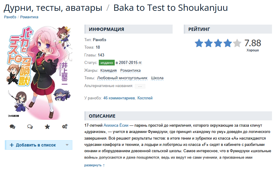Аниме, кстати, ахуенное, одно из лучших, что я видел, мб даже мангу почитаю. Она длинная?