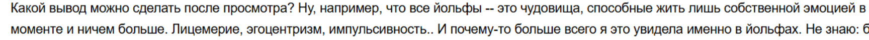 >>7929590 За других не говорю, обычно срачи стороной обхожу, но лично я доебался только до чела, у которого в фильмах есть актеры и эмоции, а в аниме актеров нет, нейронки озвучивают наверно. Ну и вчера еще доебался до одного шизойда, который очень долго и настойчиво пытался унизить анончиков в незнании оригинала, не ожидал наверно васян, что появится кто-то. Потом еще его протык со школы прибежал и в каждом аноне пытался меня найти, хотя уже давно там закончил диалог. А касательно сегодняшнего. Пока увидел только манипуляции в попытке затянуть посмотреть "ну ты посмотри какое все хорошее, не то что раньше". Я честно посмотрел, да, накрутил им счетчик. Остался при своем мнении. Сейчас смотрел ютуб и там наткнулся на пикрил, очень хорошо описывает сегодняшний момент. Прям 1 в 1.