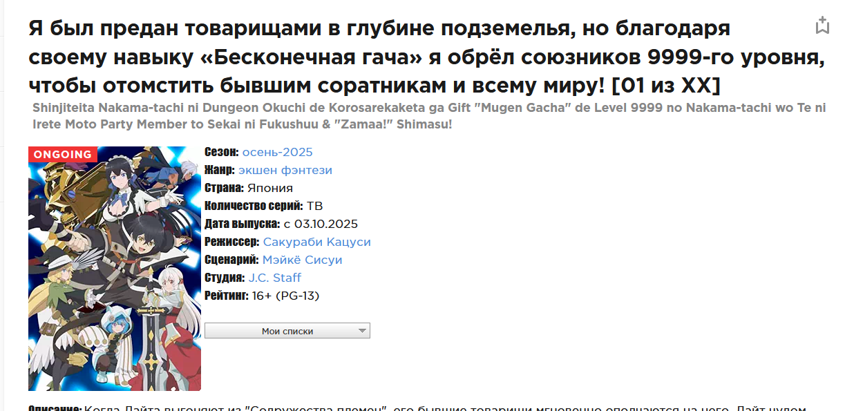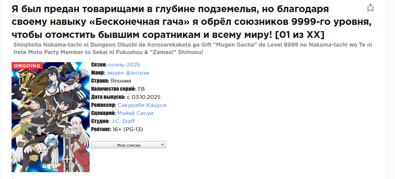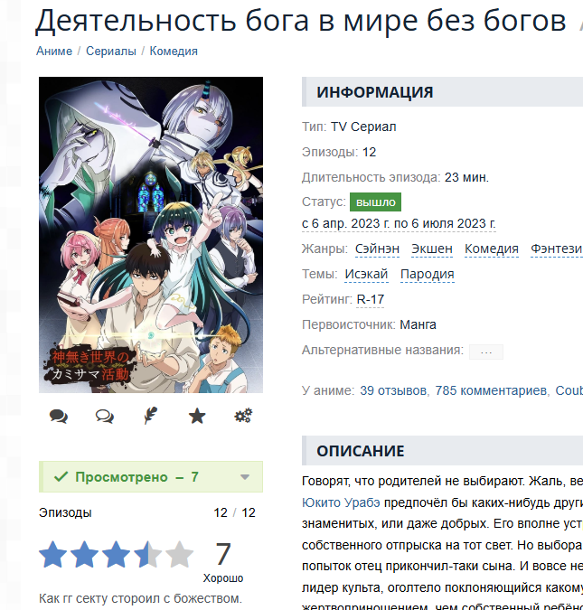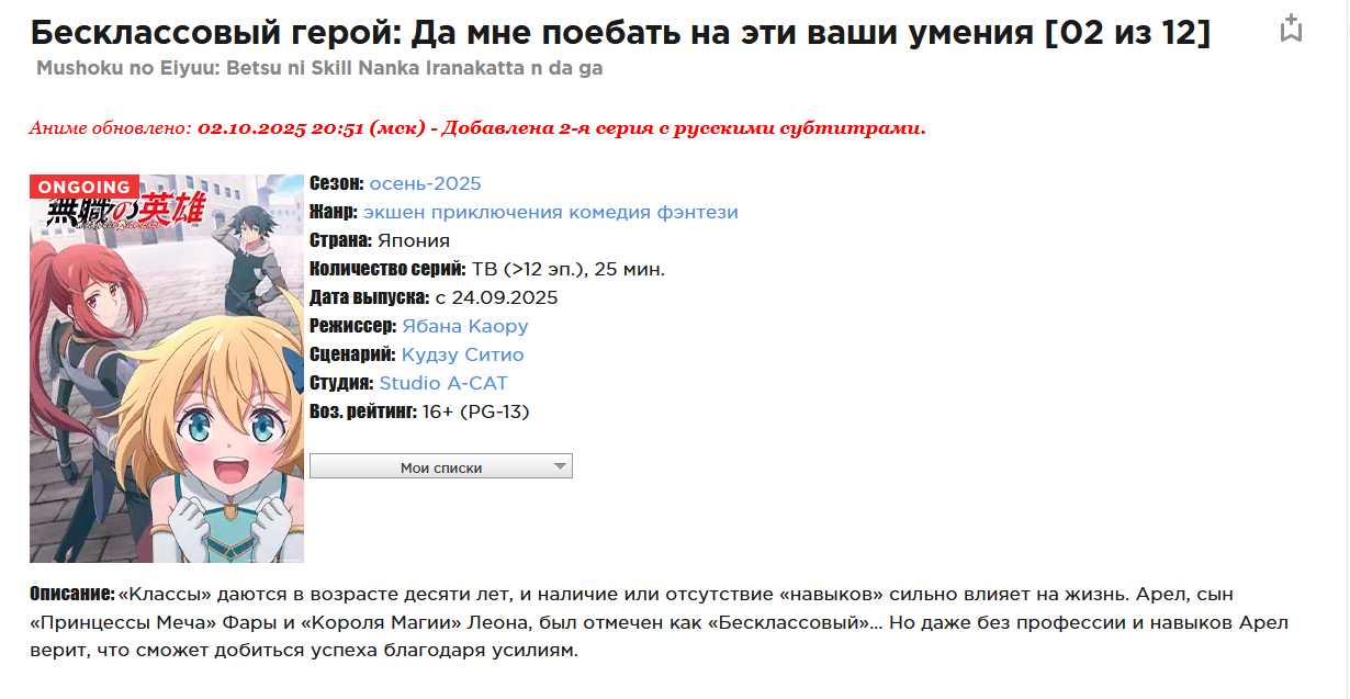 Радуют что скорей всего, в том числе учитывая бюджет, будет 2 сезон. Ранобэ вроде неплохая раз сначала получила мангу, а теперь аниме. Но тут главное нихуя не забыть, аниме может выйти и через года 2. Если выйдет В целом сойдет. 12 серий было неплохо, 13 так себе потому что слишком быстро все. Глянем че будет потом