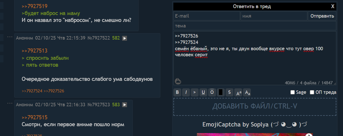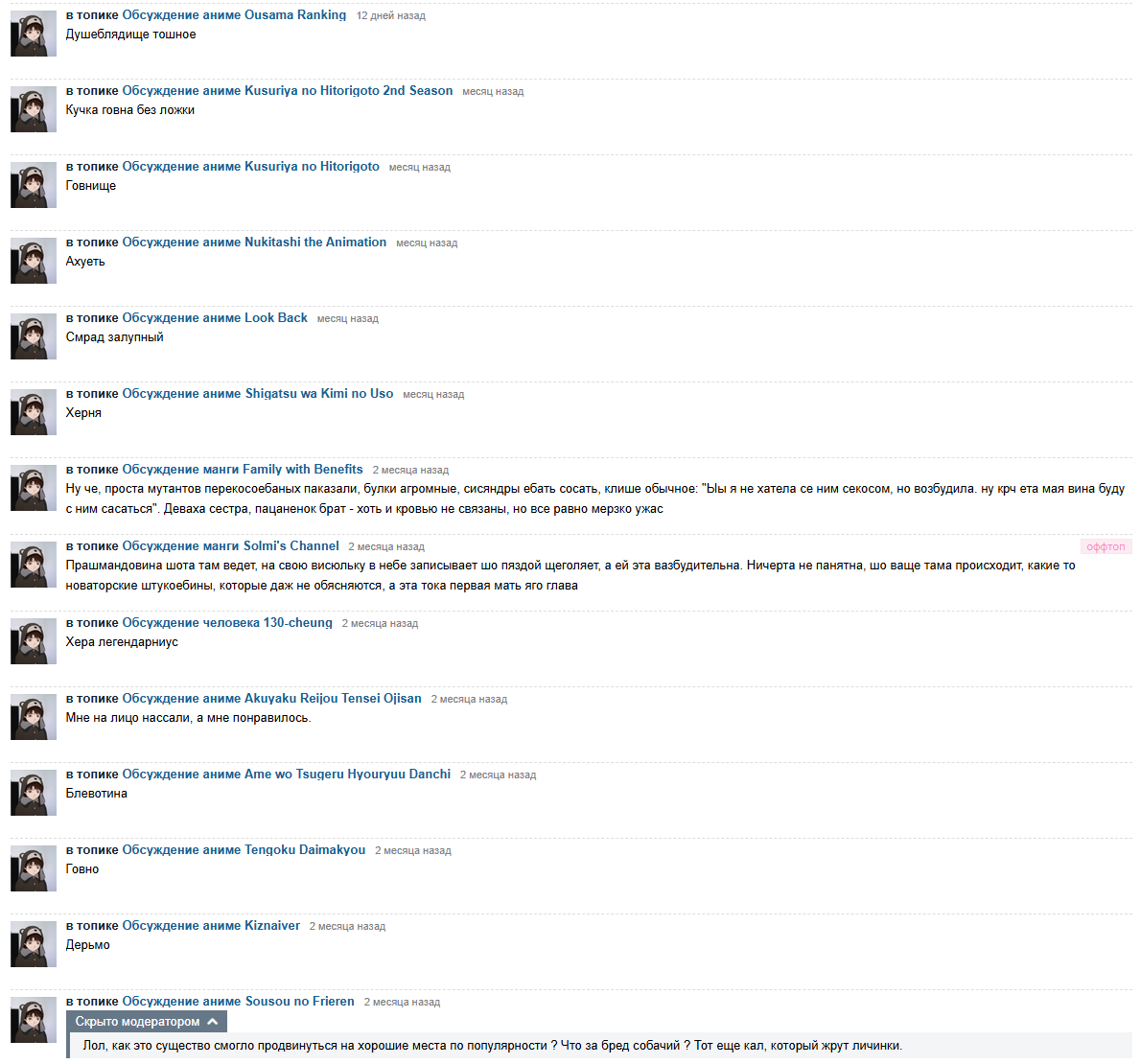 >>7929580 Ну не буду говорить о том. что мистер говняк порвался и кому-то предъявляет за адекватность, скажу лишь, что >>идет активный форс, что озвучка заебись, а субтитры говно Всё с точностью до наоборот. Аноны смотрят аниме и иногда выкладывают фрагмент из него ИТТ и если там рудаб - то начинается форс именно САБОВ, которые рвутся с того, что кто-то смотрит аниме "НЕ ТАК КАК НАДО!"