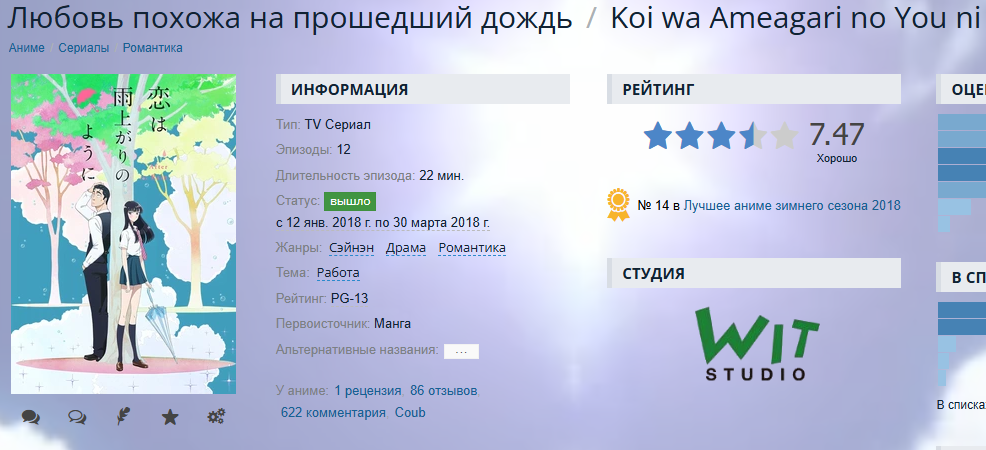 Иногда хочется какого-нибудь ШОДЖО, но в этом как-то слишком много костылей, чтобы отношения гг и бишонена хотя как-то продвигались. И бишоненов брат, и бишоненов лучший друг, и даже мамка гг сделали больше, чем сами Хана и Уэно. И как-то СМИЩНЫХ моментов чем ближе к концу, тем меньше, и вообще как-то пустовато на экране, минимум взаимодействия героев. Однако без лишней драмы рассказали, откуда у Ханы комплекс, это плюс, а то могли пускать слёзы-сопли пару серий.