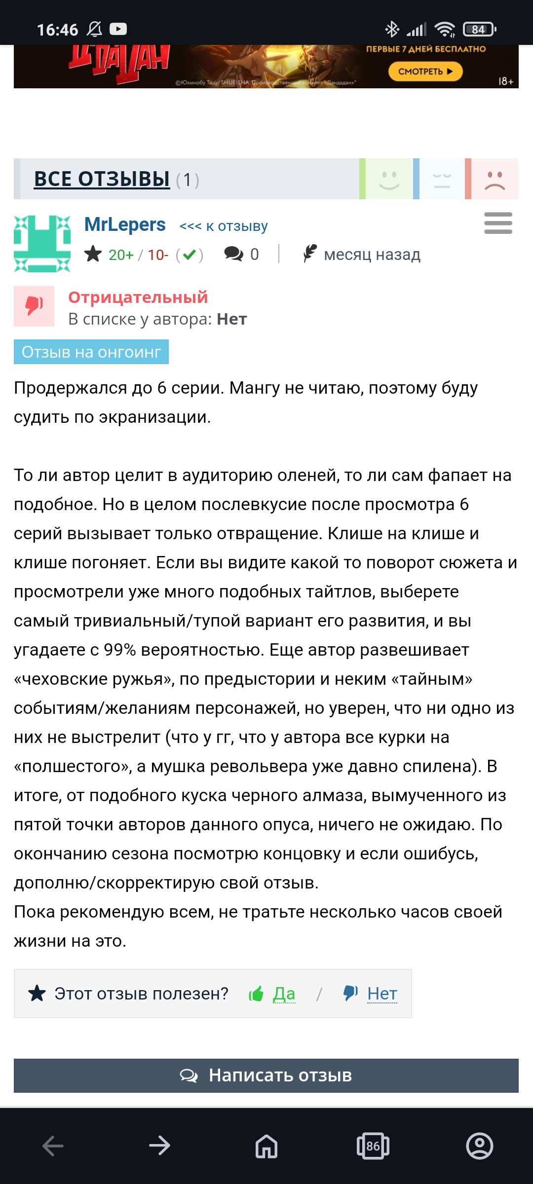 >>7926706 Докладываю об успехах просмотра (пока неполного, 9 серий):