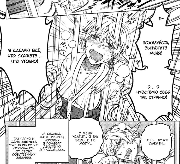 Раскрывая гоблина чуть лучше, обратимся к манге. Если в аниме на упоминание насилия потратили 10 секунд, сказав, что "дохуя гордые эльфы, надо их оприходовать, чтобы не были такие гордые, а то хули они", то в манге эльфийкам сначала дали афродизиак, а затем, когда они уже не могли терпеть, лицемерный хуесос сказал, что "ебемся только по согласию". Выбор без выбора получился. С одной стороны - умереть нельзя, а афродизиак действует, тебе предлагают потрахаться, какой у тебя выбор?
