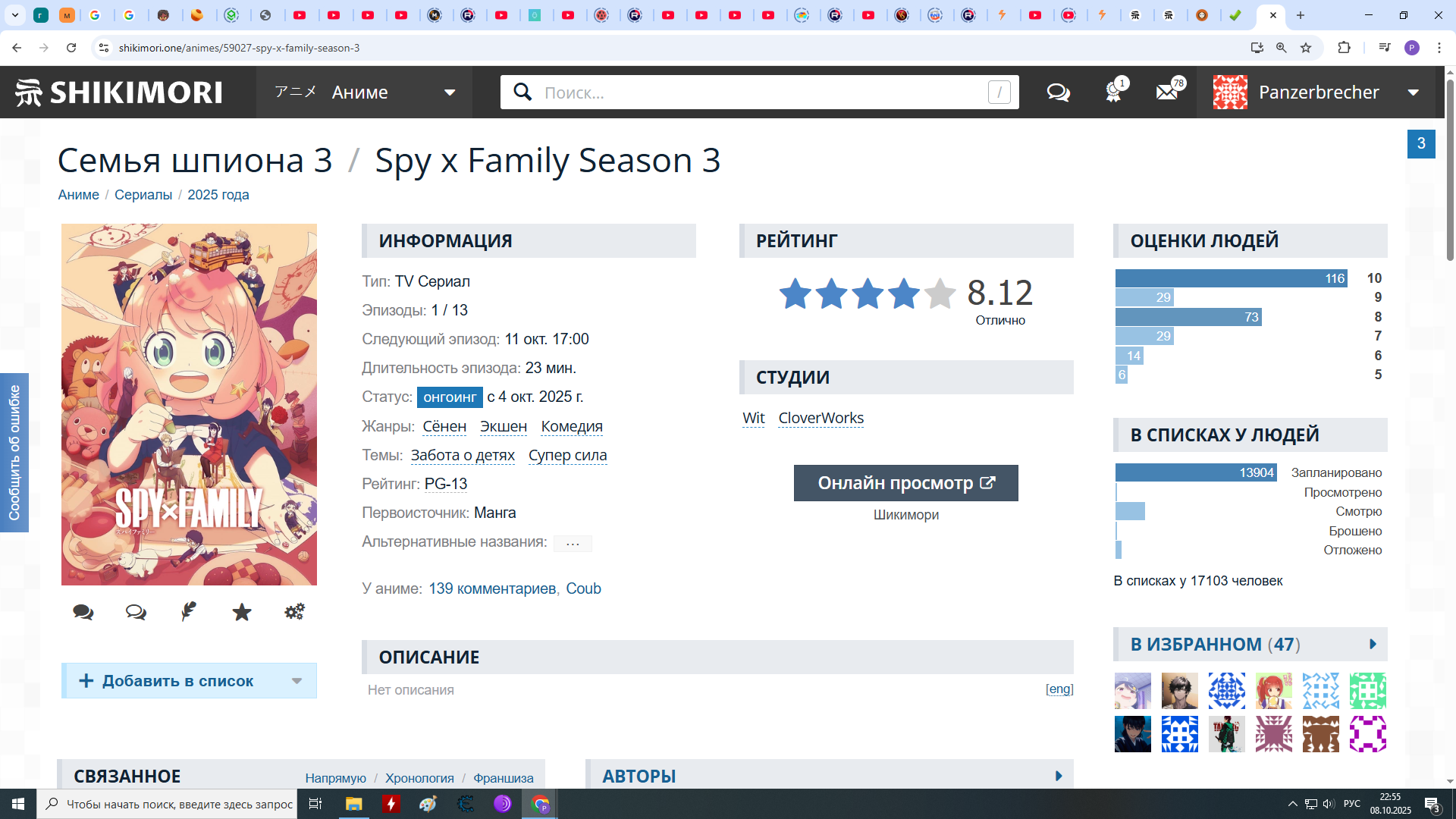 Досмотрел пикрил. В прошлый раз бросил, кажется, под конец первого сезона, ибо заебался смотреть на школьные похождения. Интереснее всего наблюдать за Лойдом и Йор, как по отдельности, так и вместе (лучшее). За Аней интересно наблюдать только если она с кем-то из родителей. Так же Юрий радует время от времени. В школе и порой вне её ситуацию спасает малолетняя сердцеедка Бекки. Остальное скучно наблюдать. Так что за последнее время это единственный тайтл где скучное я проскипал, а не просмотрел на 2х.