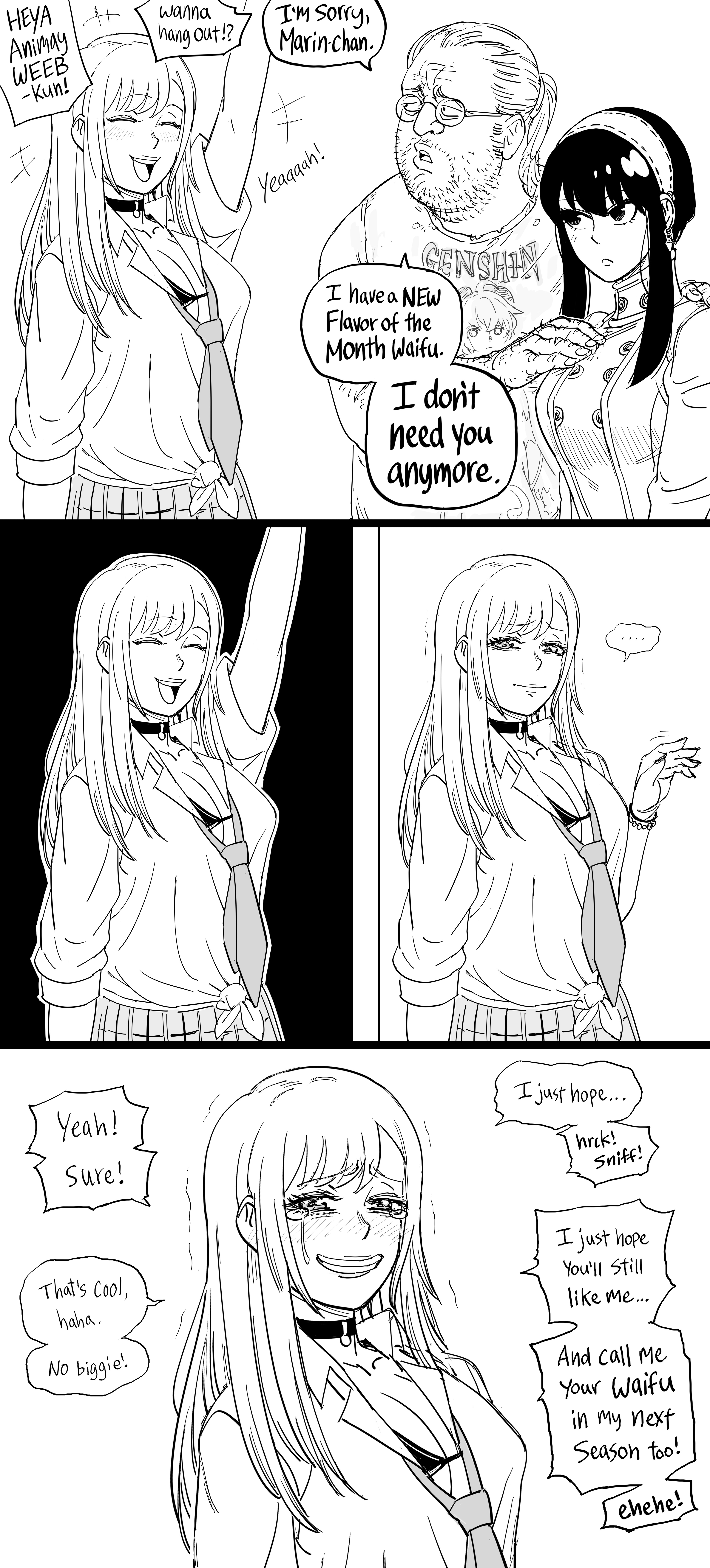 По итогам просмотра впечатления неоднозначные, тк с одной стороны навернул в рекордные сроки подряд за пару дней, значит общая база была как минимум нескучной. С другой нельзя не заметить откровенные “просадки” в тех местах где их раньше не было. Если первый сезон заманивал кривляниями Маринки и ее любовью к эччатине, выраженной в косплее, то тут второй сезон с грохотом провалился в дыру в полу. Не знаю виноват ли исходный материал, где случился стрик из говна, но окромя стартовой заманухи в виде банни-сьюта (и там наебалово), больше ничего интересного в этом сезоне не показали. Зато блин навалили НЮАНСОВ - откровений про нормализацию кроссдресинга (пидорства) и прочего, причем от души так и много. Сначала дед в магазине фантазирует про Годжо в баннисьюте и с ходу принимает тренды молодежи, дескать им виднее. Потом аниме танцует чачача и облизывает со всех сторон ебанашку карлана-дрыща кроссдрессера, а потом еще и делает контрольный в виде школьной арки и наряжание Марин в девку-кроссдрессершу из хост клуба, короче в очередного “мужского” персонажа. И завершается вся эта вакханалия аркой с наряжанием в монашек-ебанашек с фейковой гурятиной и бедами с башкой. Где-то на фоне двигается (не особо) основной сюжет, где Марин чуть жиреет на домашних харчах, а потом решает признаться Годжо, но конечно же не признается. Эпизод с ночевкой мог бы выйти неплохим, если бы не чрезмерная тряска обеих участников и перетягивание сюжетного одеяла дурацкой хоррор игрулькой. Ну и бонусом стоит отметить наебалово из эндинга, которое “спойлерит” путь косплея, показывая четыре наряда из первого сезона и четыре наряда из второго. Вот только (хаха) во втором сезоне нарядов оказалось три, все закончилось на монашках, четвертый костюм в овашке/третьем сезоне/никогда. В общем при неплохих деньгах на продакшен имеем феноменально просранный потенциал, и что вдвойне смешно на МАЛе оценка выше чем у первого, видимо “прогрессивная” общественность оценила толерантный кросдрессерский месседж. Жаль, а ведь начало сезона было вполне многообещающим. Акира - лучшая девочка (до откровений из посленего эпизода).