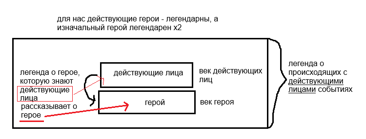 >>7930066 В таком случае выходит, что мы наблюдаем историю (легенду) в которой уже на момент происходящих событий герои были запечатлены в легендах, оттого и являются легендарными. Теперь же для нас, раз легендарные герои были вновь запечатлены в легенде, они не стали более особенными, они все так же легендарны.