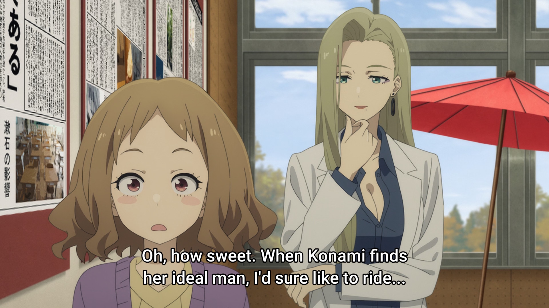 И одно наблюдение преследовало меня весь тайтл. Вот глядя на Хану и на её мамку, они очень похожи (да-да-да, ленивый чардиз), но ведь у мамки всё в порядке, она в школе сама бы к Уэно подкатила, растолкав локтями, хотя очевидно и не первая красавица. И типаж у неё типично японский, а не анимешный.