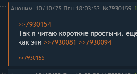 >>7930154 Так я читаю короткие простыни, ещё зависит от того кто и что пишет, можно и простыню прочитать если она по делу и интересная как эти >>7930081>>7930094