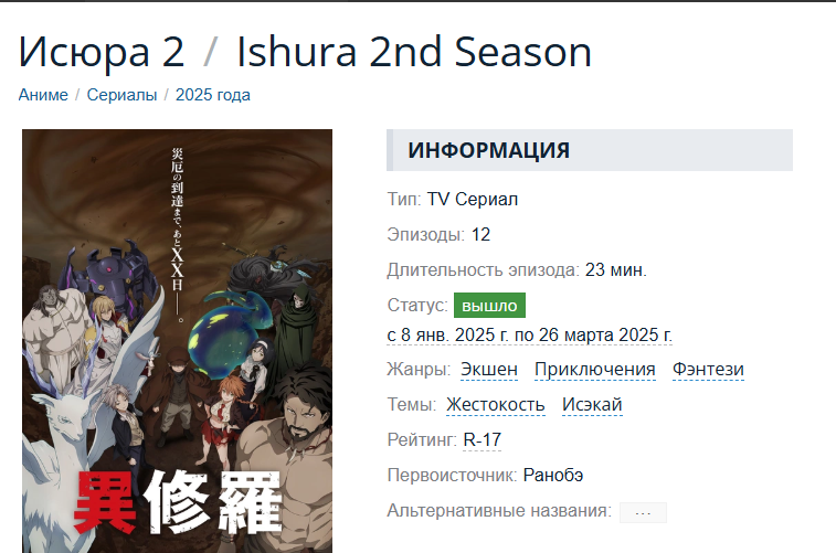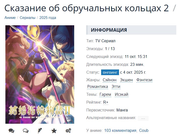 Ближайшие премьеры: Fushigi no Kuni de Alice to: Dive in Wonderland – 29 августа https://youtu.be/Xs-qujW9gMw Yasei no Last Boss ga Arawareta! – 27 сентября https://youtu.be/raqmeVXfwTM Souzai Saishuka no Isekai Ryokouki – 29 сентября https://youtu.be/gzr-d0k_AsU https://youtu.be/hHwaVf9L72Q Potion, Wagami wo Tasukeru – 2 октября https://youtu.be/B8-jCAksIF4 Ansatsusha de Aru Ore no Status ga Yuusha yori mo Akiraka ni Tsuyoi no da ga – 5 октября https://youtu.be/TPHB6cJw0ZE Chichi wa Eiyuu, Haha wa Seirei, Musume no Watashi wa Tenseisha. – 5 октября https://youtu.be/lqCibAfjiKI Tondemo Skill de Isekai Hourou Meshi s2 – 7 октября https://youtu.be/HJvcmhXYHMM Tensei Akujo no Kuro Rekishi / Тёмная история реинкарнировавшей злодейки – 8 октября https://youtu.be/cVdJg0zGPsA Isekai Munchkin: HP 1 no Mama de Saikyou Saisoku Dungeon Kouryaku – октябрь https://youtu.be/9EdDQ2QNmEs Hell Mode: Yarikomizuki no Gamer wa Hai Settei no Isekai de Musou suru – январь 2026 https://youtu.be/dhDyy0eAGDs Gekijouban Tensei shitara Slime Datta Ken 2 / О моём перерождении в слизь 2-й фильм – 27 февраля (в кинотеатрах) https://youtu.be/tBA9iiLYk9Q https://youtu.be/Xf73IT2cnGE Honzuki no Gekokujou: Shisho ni Naru Tame ni wa Shudan wo Erandeiraremasen pt3 – 2026 Re:Zero s4 – 2026 https://youtu.be/Ndi1vPKZ4g4 https://youtu.be/01nLOU3J_Uo Mushoku Tensei: Isekai Ittara Honki Dasu 3rd Season / Реинкарнация безработного: История о приключениях в другом мире 3 сезон – 2026 https://youtu.be/SUZNsBQP4uI https://youtu.be/IPd6V4VyjHc Tensei shitara Ken deshita s2 / О моём перерождении в меч 2-й сезон – 2026 Isekai Nonbiri Nouka s2 – 2026 https://youtu.be/-Do46yCEZP4 Okiraku Ryoushu no Tanoshii Ryouchi Bouei – 2026 https://youtu.be/NGeVvNrJo8o Isekai Quartet 3 / Исекай Квартет 3 – анонс Youjo Senki 2 / Таня 2 сезон – анонс Otome Game Sekai wa Mob ni Kibishii Sekai desu s2 / Мир отомэ-игр — это тяжёлый мир для мобов 2-й сезон – анонс Magical★Explorer: Eroge no Yuujin-Chara ni Tensei shita kedo, Game Chishiki Tsukatte Jiyuu ni Ikiru – анонс Sekai Saikou no Ansatsusha, Isekai Kizoku ni Tensei Suru s2 / Лучший в мире ассасин, переродившийся в другом мире как аристократ 2-й сезон – анонс Isekai de Cheat Skill wo Te ni Shita Ore wa, Genjitsu Sekai wo mo Musou Suru: Level Up wa Jinsei wo Kaeta s2 – анонс Kage no Jitsuryokusha ni Naritakute! Movie: Zankyou-hen – анонс https://youtu.be/O4G4OTSjO1Y Sasaki to Pi-chan s2 / Сасаки и Пи 2-й сезон – анонс https://youtu.be/yXXVpHDNg2E Tsuki ga Michibiku Isekai Douchuu 3rd season / Лунное путешествие приведёт к новому миру 3-й сезон – анонс Shin Magic Knight Rayearth – анонс https://youtu.be/IWnj91xAq7o Chiyu Mahou no Machigatta Tsukaikata s2 / Неправильное использование исцеляющей магии 2-й сезон – анонс https://youtu.be/vPQ1dfQbaMY Tensei shitara Slime Datta Ken 4rd Season / О моём перерождении в слизь 4-й сезон – анонс Mairimashita! Iruma-kun s4 – анонс https://youtu.be/fF_lsyL-srs Gaikotsu Kishi-sama, Tadaima Isekai e Odekakechuu s2 / Скелет-рыцарь в исекае 2-й сезон – анонс Tensei Kizoku, Kantei Skill de Nariagaru s3 / Реинкарнация в аристократа с [оценкой] 3-й сезон – анонс https://youtu.be/5Y_AXVAOrjQ Mezametara Saikyou Soubi to Uchuusenmochi Datta node, Ikkodate Mezashite Youhei toshite Jiyuu ni Ikitai – анонс Sozai saishu-ka no i sekai ryokou-ki / Приключения собирателя в исекае – анонс KONOSUBA s4 – анонс Tensei shitara doragon no tamagodatta / Реинкарнация в яйцо дракона – анонс Death March kara Hajimaru Isekai Kyousoukyoku s2 / Десмарш 2-й сезон – анонс Higeki no Genkyou to Naru Saikyou Gedou Last Boss Joou wa Tami no Tame ni Tsukushimasu s2 – анонс Akuyaku Reijou no Naka no Hito – анонс Isekai no Sata wa Shachiku Shidai – анонс Risou no Himo Seikatsu – анонс Gacha wo Mawashite Nakama wo Fuyasu: Saikyou no Bishoujo Gundan wo Tsukuriagero – анонс Nidome no Jinsei wo Isekai de – анонс Heroine? Seijo? Iie, All Works Maid desu (Ko)! – анонс Meikyuu no Shiori – анонс Izure Saikyou no Renkinjutsushi? s2 / Возможно крутейший алхимик всех времён 2-й сезон – анонс Jidou Hanbaiki ni Umarekawatta Ore wa Meikyuu wo Samayou s3 / Перерождение в торговый автомат 3-й сезон – анонс