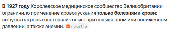 а вместо лечения занимались медичиной с кровопусканием дуримары только в 1927 году приняли закон ограничивающий кровопускание, к тому же позволяя кровопускание при анемии такие вот цирюльники в поле друг-друга и залечили в Крыму а после этого закона никаких публичных органичений уже и не вводили в том числе потому что к 1945 годику поняли какую хуйню делали, к тому же публично со спущеными шароварами