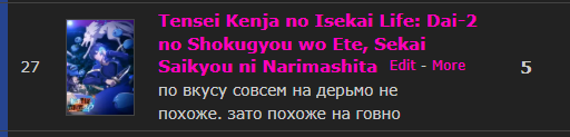 Ничего, весной бомжа новый сезон, где уже начнётся экшон, там и будем наслаждаться. До апреля терпим "перерождение в принцессу с самым слабым навыком, из-за чего её выгнали из пати, но бесконечный навык гачи позволил уничтожить весь мир кубами, попивая кофе у себя в библиотеке"
