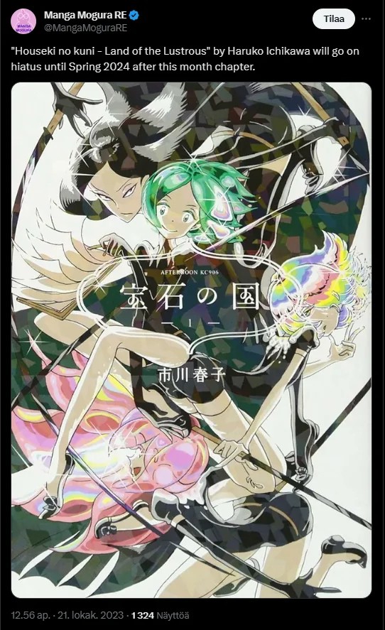 Суть: В мраке далёкого тёмного будущего уже давно прошел 6-й постапокалипсис. Изуродованные наследники человечества снова вступают на путь страстей, ведущий к очередному циклу страданий. Главный(ая) герой(иня), Фосфофилит, слаб(а) и абсолютно бесполезен(на). Сможет ли он(а) найти своё место в этом мире и раскрыть все тайны? Или получить желаемое освобождение от бремени бытия?
