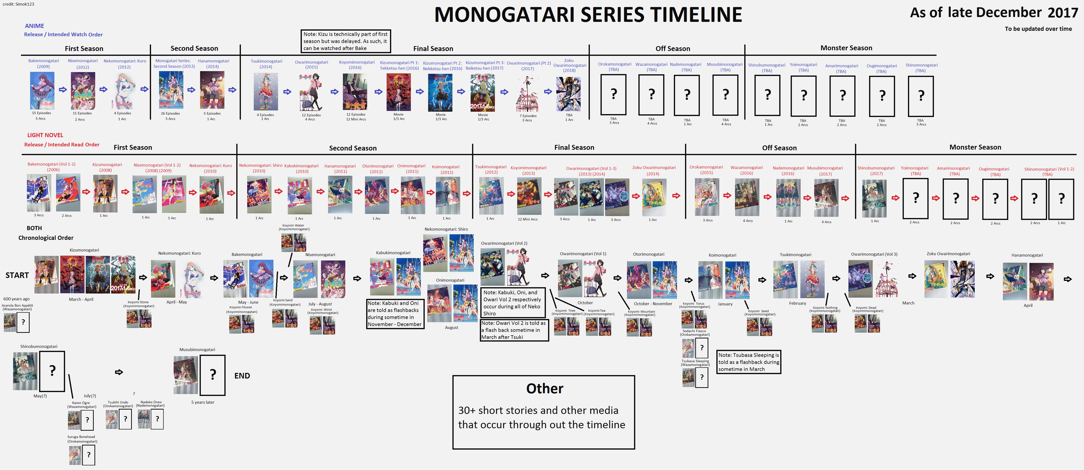 >>7690687 Порядок выхода отличается только тем что кизу вышла очень поздно, аж после оварей, из за производственной неопределенности. Ее начали делать еще в 2009 а вышла в 2016. В книжках кизу идет после баке и это более правильно для повествования что бы понимать кто такая шинобу и что там произошло между ней и арараги, все таки это приквел.