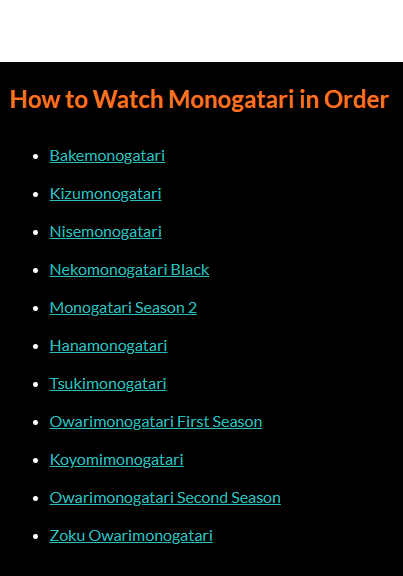 Порядок просмотра: Bake -> Kizu I-II-III -> Nise -> Neko -> Second Season(Neko White, Kabuki, Otori, Oni, Koi) -> Hana -> Tsuki -> Owari -> Koyomi -> Owari S2 -> Zoku
