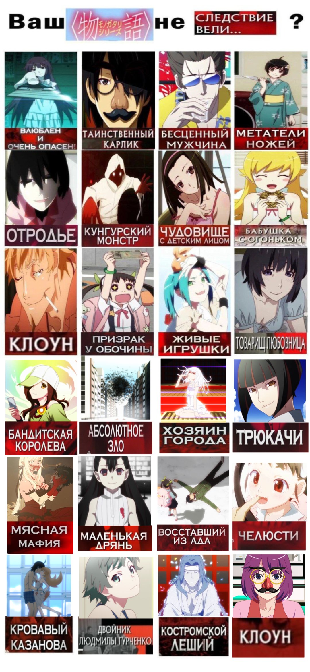 Вот я баке-нисе-неко когда смотрел, прям кипятком сцался. От баке оче сильно, от нисе и неко поменьше, но тоже годно было. Что не опенинг, так шедевр, что не ендинг, так симфония нах. Герои объемные, окружение довлеет и управляет сюжетом. Второй сезон ощущался освежающе и тоже очень порадовал. Были тягомотные моменты, но ощущалось здорово и встроенно. Цукимоногатари ладно, история про один вечер буквально. Кизумоногатари тоже хорошо, пусть и в своем особенном стиле. Но вот дальше уже тягомотина какая-то пиздец пошла. Сам Арараги ещё генерирует нечисть и аномалии, из очка их достаёт что-ли? То классную комнату заколдовал, то в вампира блять превращается, о ужас, то вообще город превратил в зазеркалье всего-то встав не с той ноги. С Ойкурой очень скомкано вышло, прям как в меме refuses to elaborate leaves. С Шинобу непонятная хуйня и она сама задвигается на третий план.