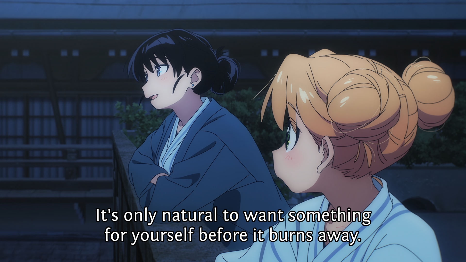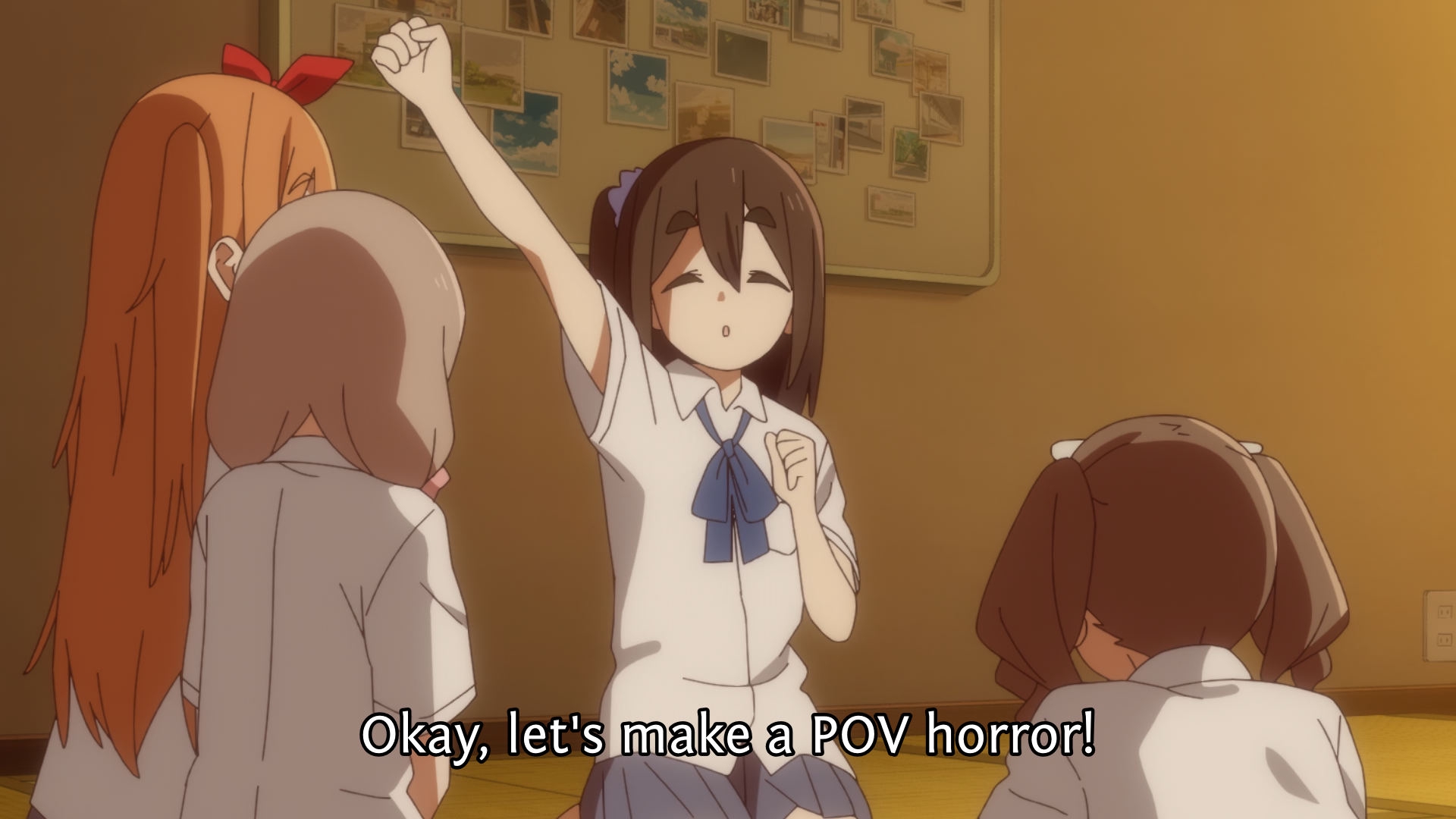 Это было примечательно только как слив потенциала, такой пососный слайс получился. Персонажи все одинаковые, главных героев и весь их клуб ставят на задний план большую часть таймлайна, реклама кемпингов и онсенов не милая и не интересная, мангака и её друзья даже более унылые чем остальные, оккультная хуйня вообще не в тему.