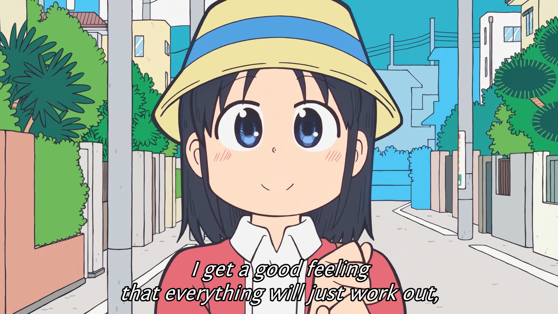 Это вызывает какие-то ностальгические чувства, мне кажется даже в отрыве от Ничиджо. Хотя моэ даже теперь благоприятствует представлению наивных, искренних радостей, но возможно всё же чего-то в современном аниме стало меньше?