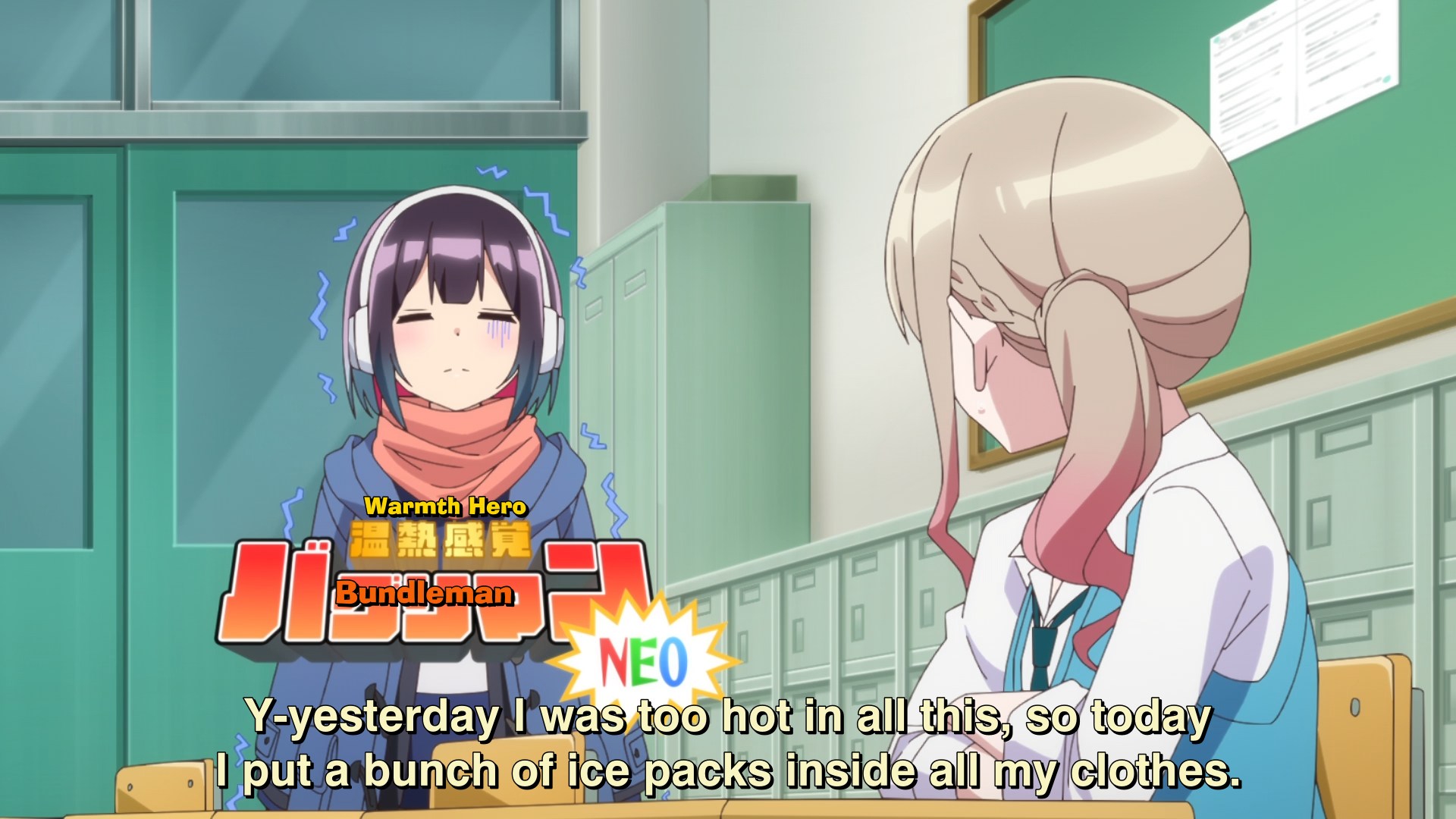 >>7887167 Отлично! Нашёл ещё одну минорную сценку в этом эпизоде - чуть позже тян жалуется на холод и дрожит перед тем как залезть в ванну на горячем источнике. Добавлено в коллекцию.