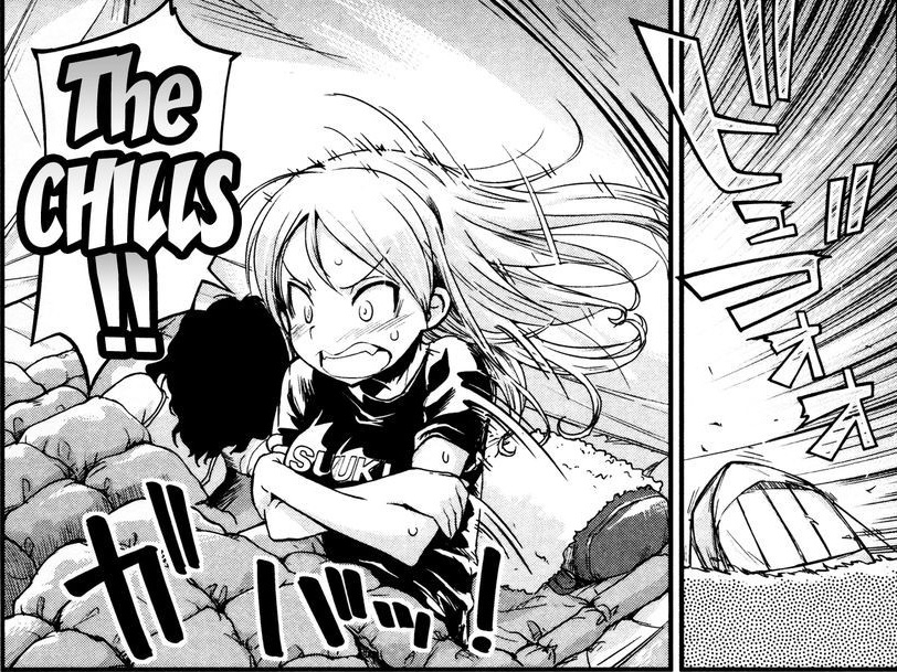 Отсмотр обоччамы начал приносить дивиденды! Obocchama-kun эп.166 04:17 - 04:26 Пережидает пургу в пещере. Obocchama-kun эп.204 08:00 Чихает и ёжится, после чего батя накидывает на её оголённые плечи свой пиджак (You Must Be Cold ).