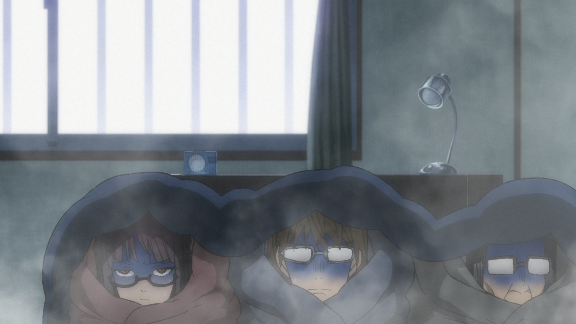Hyouka эп.20 Кун и тян сидят запертые в холодном сарае, пока их в конце эпизода не находит товарищ. Тян дрожит и время от времени дышит в ладошки но создаётся впечатление, что кун мёрзнет сильнее. >>7823188 >Желтоволосая тян судя по позе тоже немного мёрзнет, но это не точно. Хотя нет, похоже это её дефолтное агрегатное состояние.