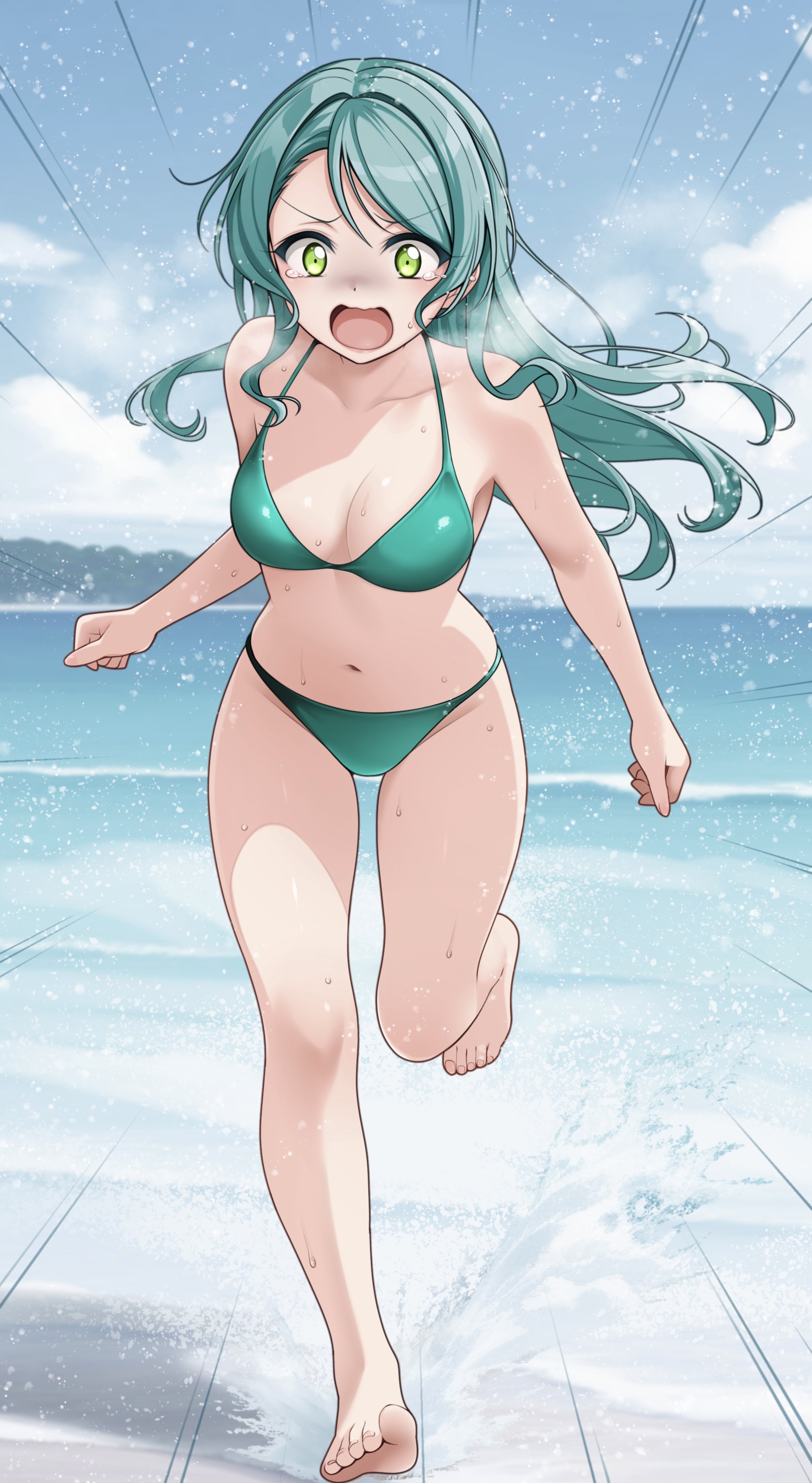 На этом кадре художник оторвал у тни кусок левого бока, но этого ему показалось мало. И тогда рисовала отрезал ей ухо! И всё это абсолютно бескровно - работал настоящий мастер-ассасин! Вот что бывает, когда на аутсорс приглашают художника-гуроёба. Но и тня не лыком шита: когда ветер задирает ей волосы в следующий (и затем ещё несколько) раз, все запчасти на месте. Реген, хули.