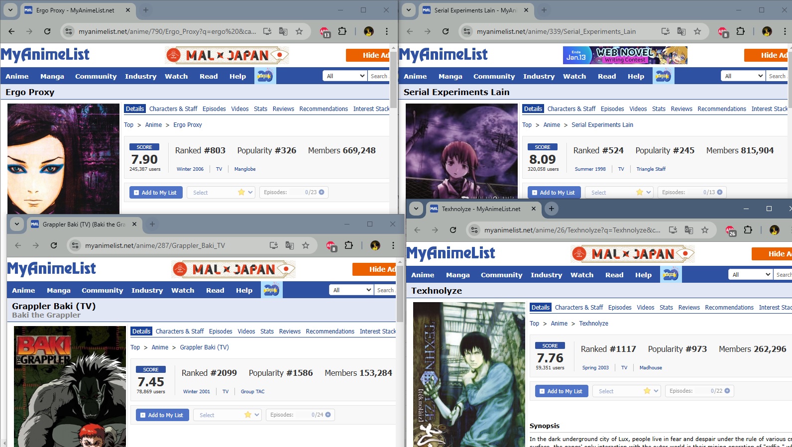 >>7820371 >до которой массовому зрителю нет дела Техналайз не помню, но что эрго прокси, что лейн даже по тв крутили у нас. Хоть на mal зайди - посмотри рейтинги. Бтв, я там немного о другом писал. Про автора с улицы, который приходит с ахуительной идеей. А тут сценаристы с нормальным стажем. сделали нормальное аниме, и оно нормально продалось
