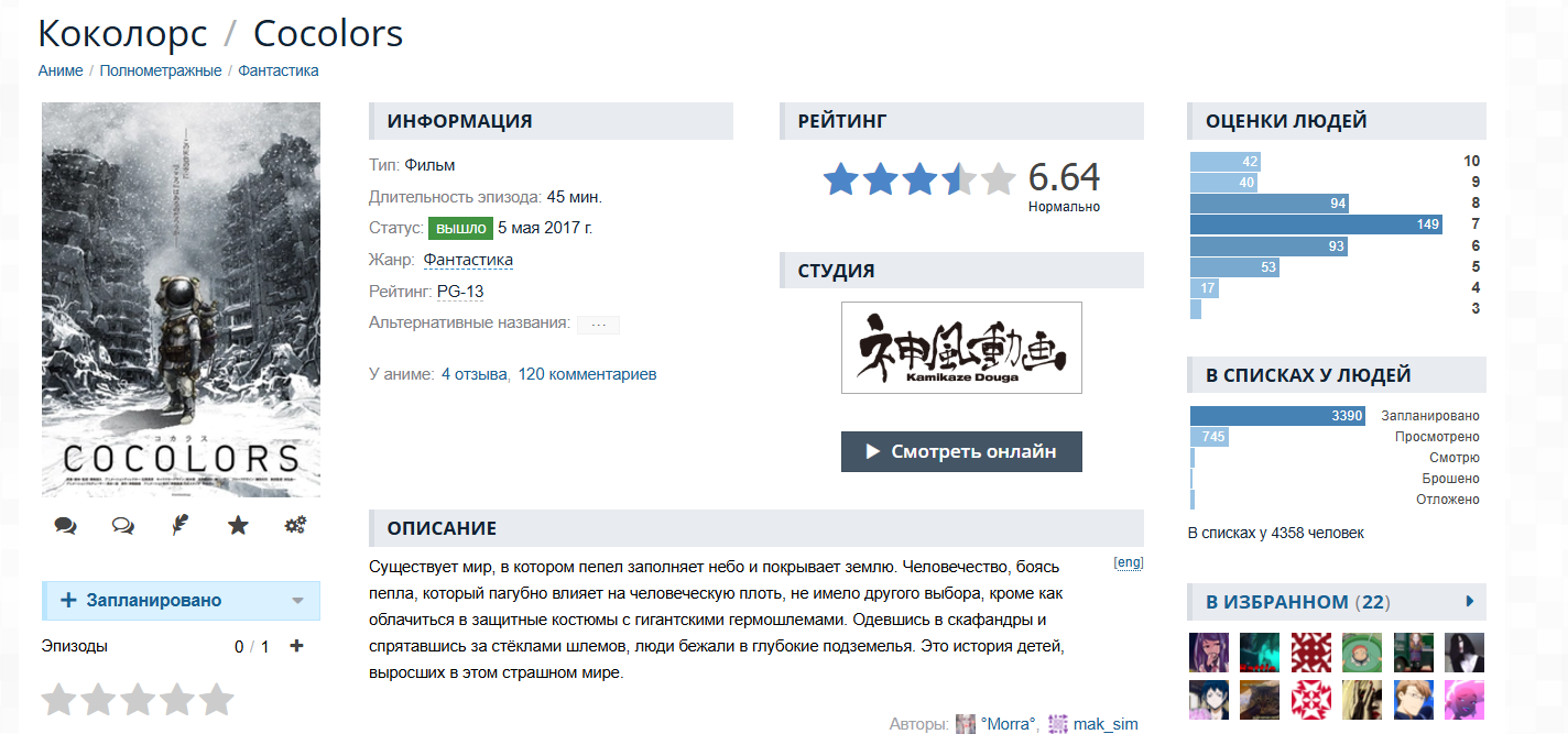 Имхо, артхаус в аниме есть. Но по большей части все переведенные на русский тайтлы им не являются. Скорее всего на просторах сети можно найти какое-нить комьюнити помышляющее переводами такого - там и за тайтлы "не для всех" пояснят, и "интерестных" списков для просмотра накидают. Но надо ли оно? Тв тайтл по дефолту артхаусом не является, так как создан для показа по тв (то бишь с расчетом на широкую аудиторию). Особо глубоко в муть с настоящим аниме артхаусом не влезал, но он вполне себе живет. Хоть его сначала надо откопать и перевести. Пик, например. Создан для показа на фестивале (фесты есть, да). да, пример несвежий, но я на рандоме посмотрел что триггеры наснимали и все. студий много, сольных авторов еще больше. Думается мне что на деле проблема не в отсутствии артхауса имхо, жанр для обмена идеями работников отрасли, а в перекосе отрасли на сенены/седзе. Ну тут уж что поделать - массы требуют фансервис. Бтв, сейнены вполне себе выходят, да их меньше, но они есть. P.S. Цифры от балды, просто чтоб в целом обрисовать как я это вижу: Создатели долбят по массам: кодомо 15%, сенен/седзе 60%, сейнен/дзесей 25% Переводчики продолжают ебку масс: кодомо 5%, сенен/седзе 80%, сейнен/дзесей 15% Убираем дзесей, остается ~10% Убираем околохентай, ультранасилие, комедии и т.д. - остается 3% всякой психологии/философии (тут, кстати, отваливается годнота типа басни) Убираем проходные и плохие тайтлы - остается 0-1% - вот это собственно и смотрят "ценители артхауса", имхо. Не сам артхаус, а просто взрослые аниме про философию/психологию. (спираль ито, например)