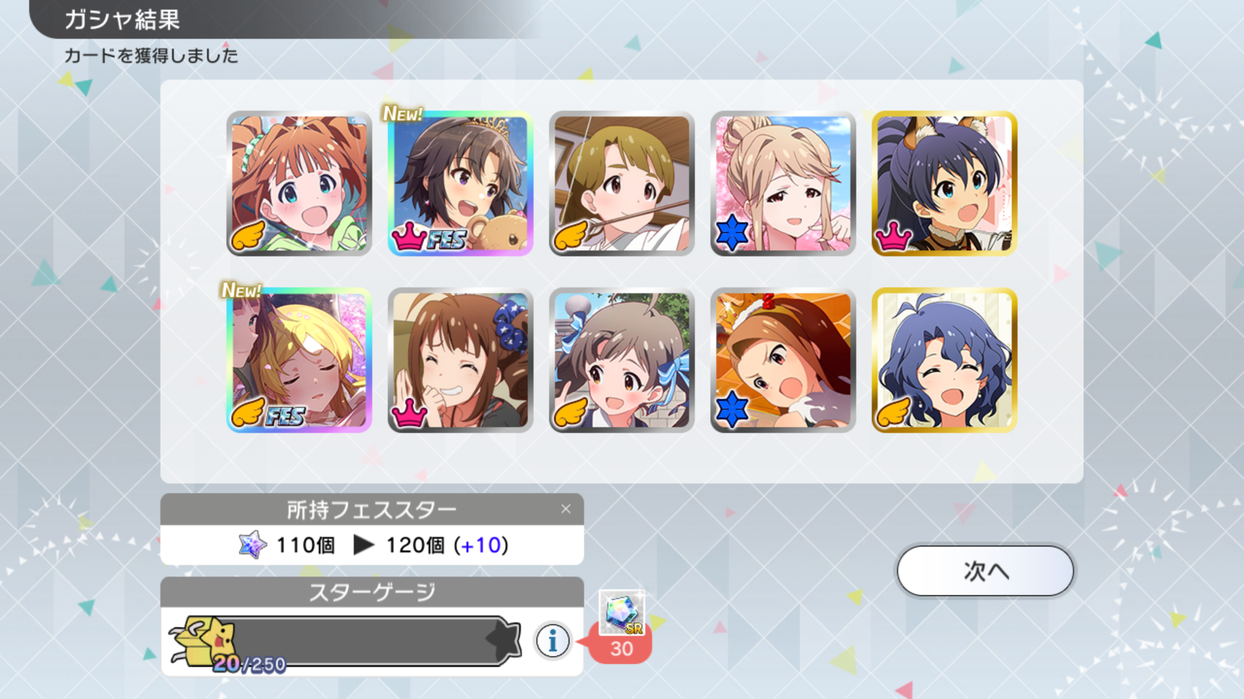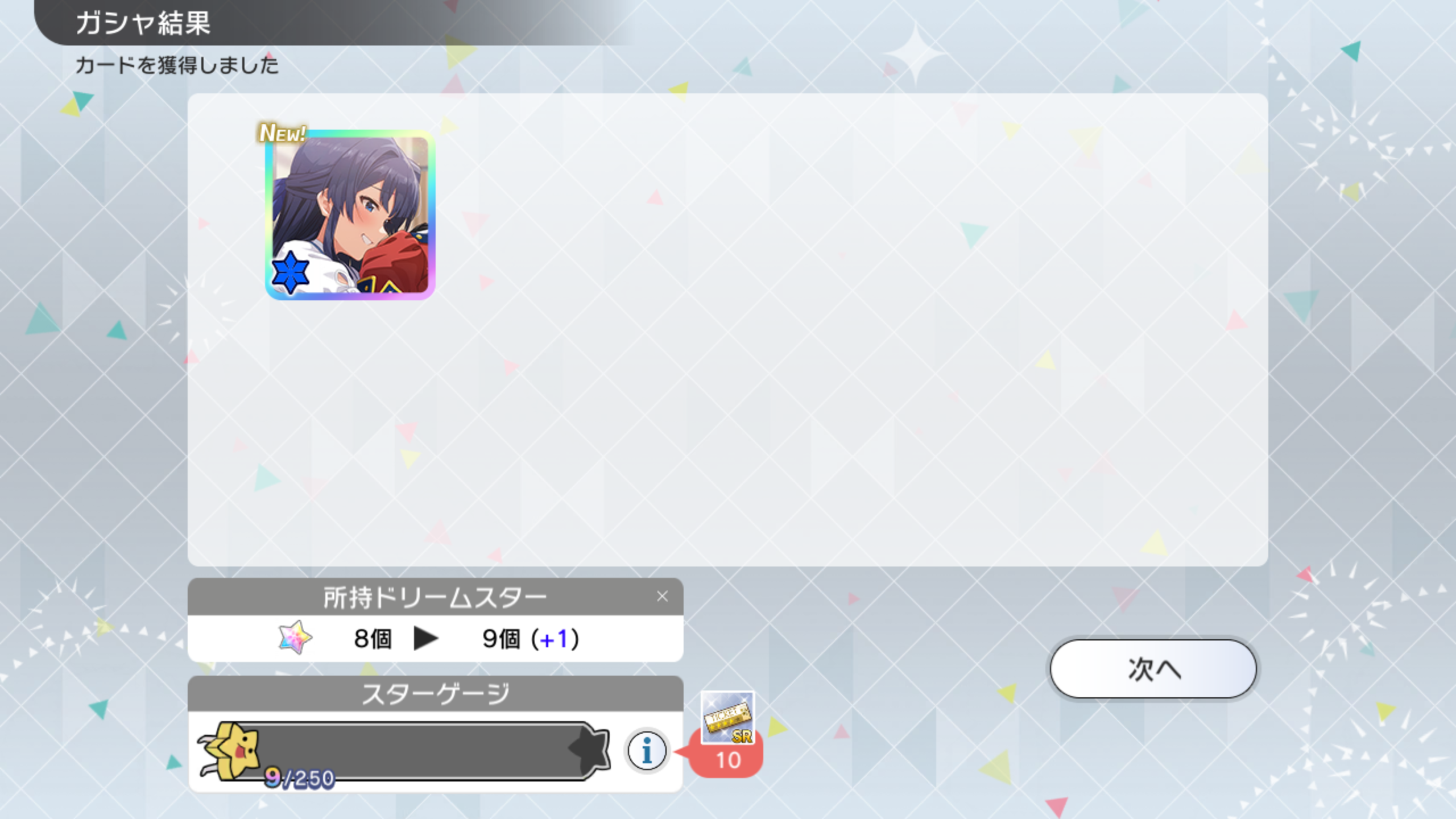 А я ведь хотел Макото... Ну ладно, тоже неплохо. Вовремя остановился, а то что-то многовато небаннерного шлака с СР гачи падает, для таких-то вероятностей. Первый раз пробовал и может быть последний, лучше на ССРки буду копить дальше.