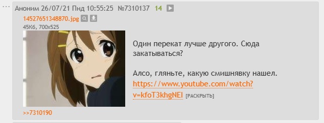 Мне нравится что это кто-то другой запостил (потому что оригинал ответил бы вам на каждое сообщение по два раза и ещё постов пять бы насмехался без пингов) но вы всё равно ему юшек накидали и накормили до отвала...
