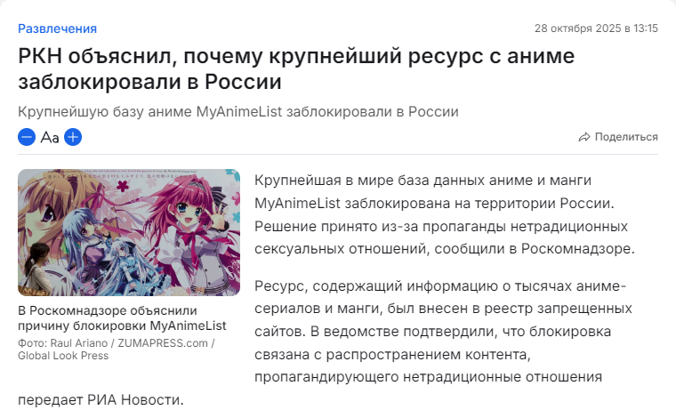 Ну все, теперь вопрос времени когда тайтлы с шикиморья начнут активно выпиливать. Пока только хентаем и на его грани ограничились, но скорее всего и до юрислайсиков дойдут, когда более пристально обратят внимание на содержание сайта.