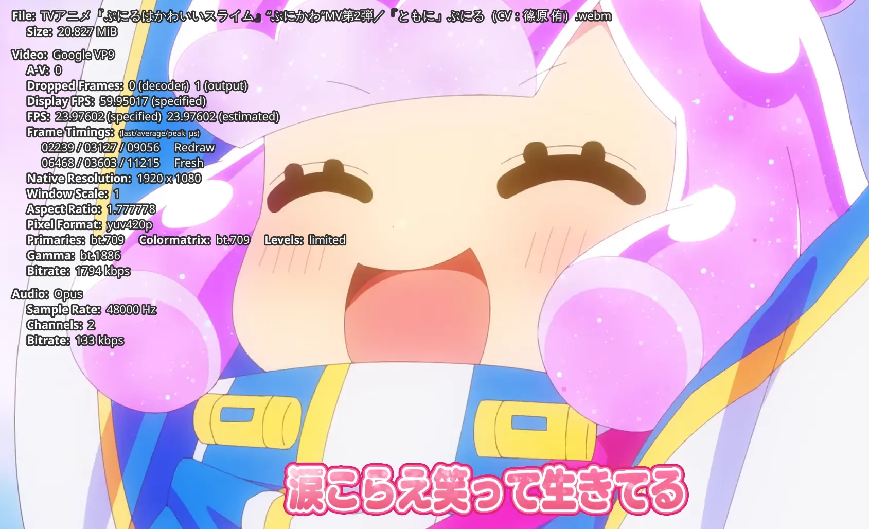 >>7964676 Используй нормальный плеер: >https://mpv.io/installation/ >pressing Shift+i (capital 'I') displays technical information and statistics about the currently playing media file on screen. This overlay shows details like resolution, frame rate, video/audio codecs, and cache status.