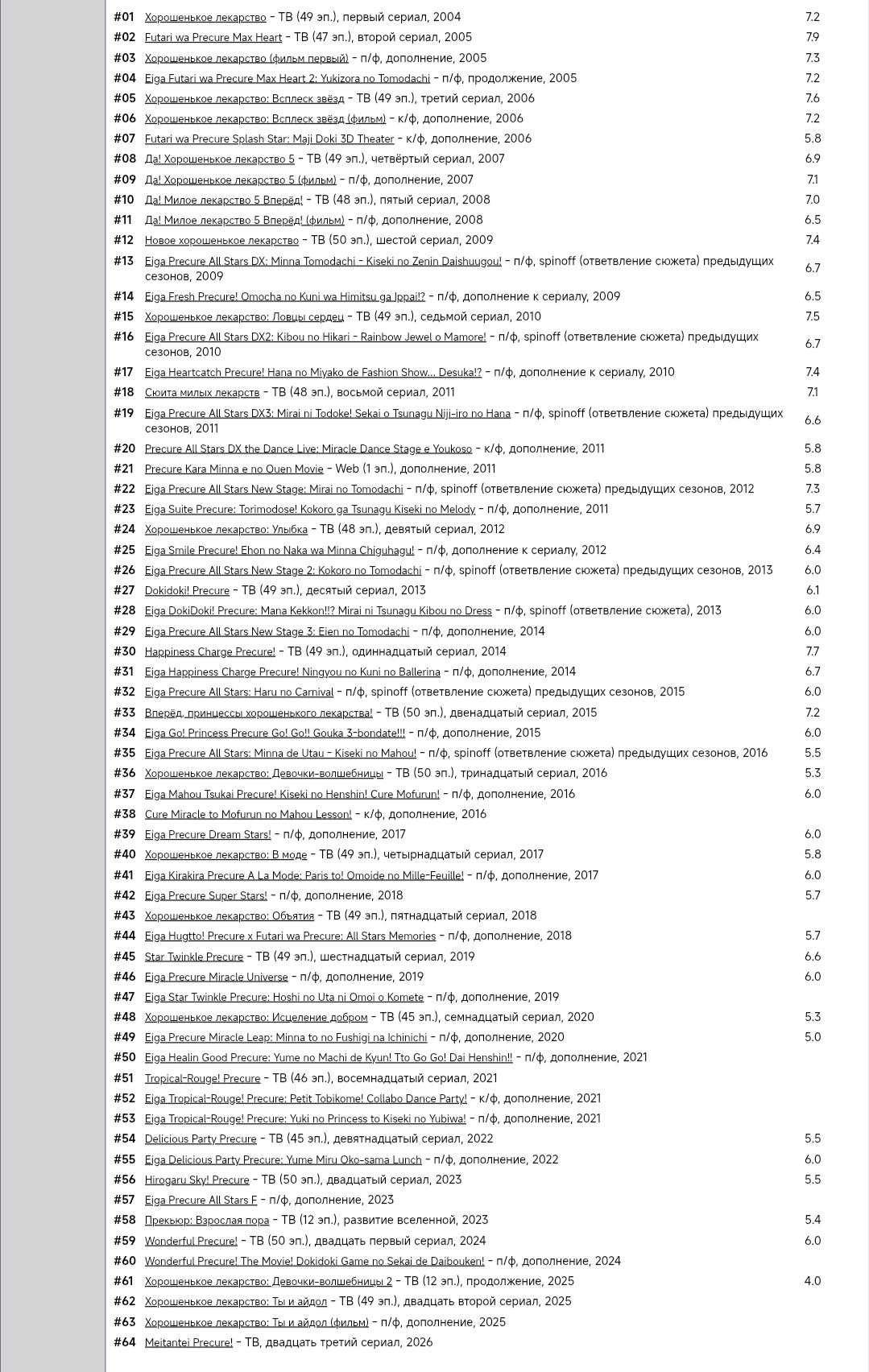 >>7957247 У солокалыча и бензокалыча ещё больше, и что это не сделало их калом? Я бы даже так сказал что всё что выше 7.9 это тайтолы для нормисов ни о чём. Да окей кала откровенного там всё же нет не буду врать но годноты крайне мало. Все мои топ 20 титулов оцениваются в районе 7+- какая-то закономерность