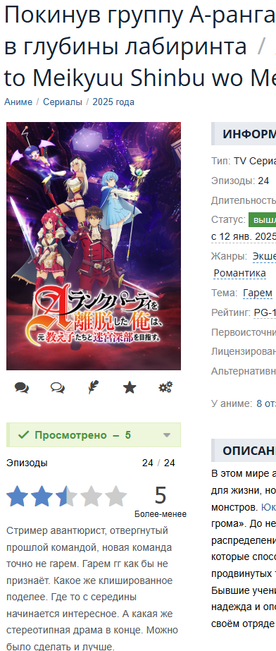Опять мусорный сезон. Опять кого-то из отряда выгнали, опять исекай параша и тд. Чую кроме того первого эпизода на час больше в этом сезоне ничего и не будет.