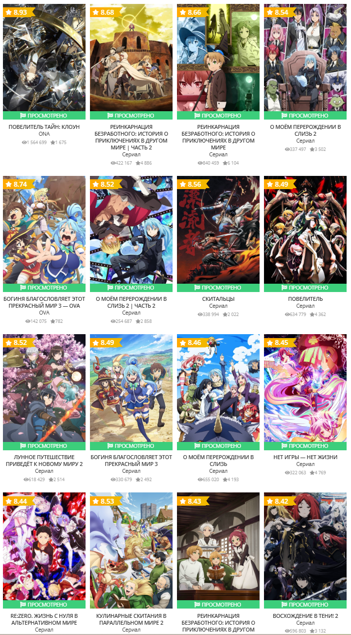 а какой смысл смотреть все подряд? хорошего сраниме дай бог сотня наберется, нахуя смотреть говно про гаремники и прочие высеры который сами японцы калом считают и просто для гайдзинов клепают ради денег