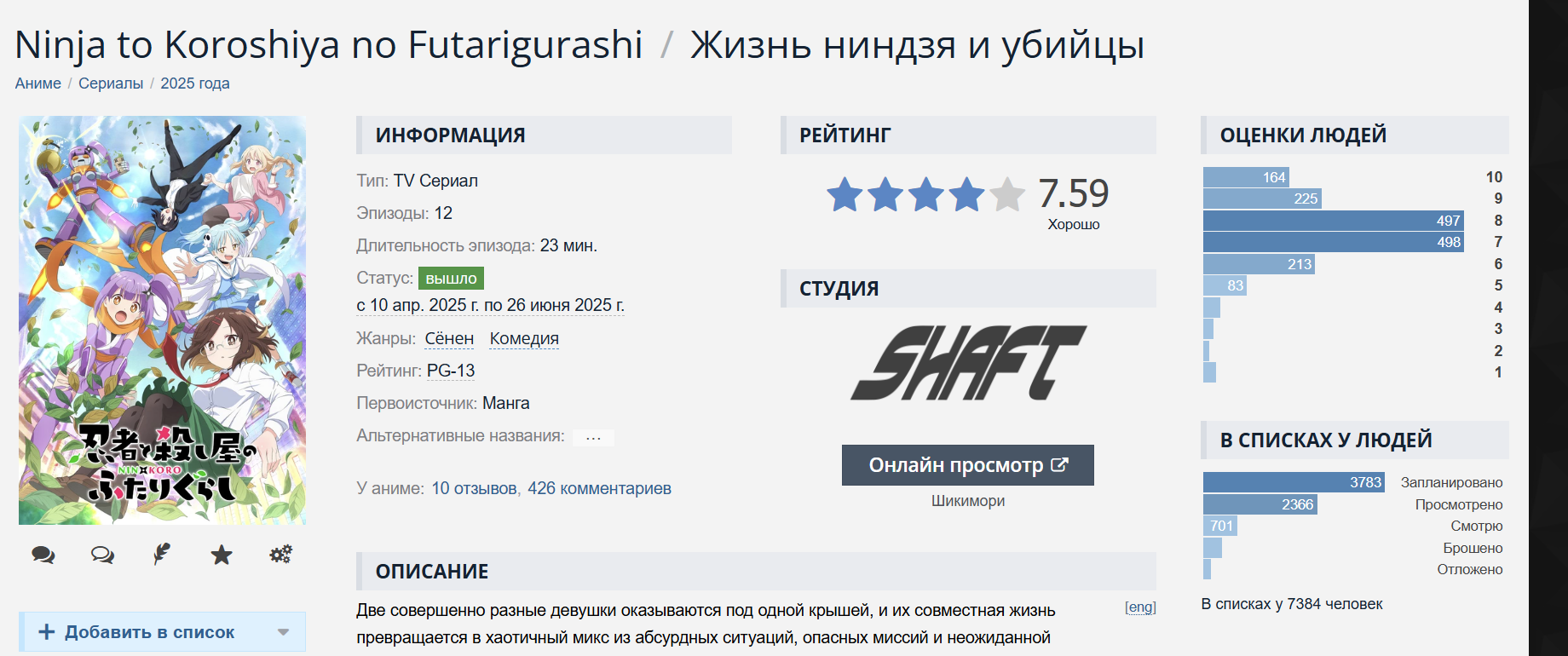 >По поводу оценок, они высокие из-за графона и слегка нестандартного сетапа Люди видимо забыли что аниме ванпанчменом не ограничивается. На его фоне конечно анимация топовая. Но в целом по индустрии она просто нормальная. Читаю щас топик на моле и охуеваю с говноедов