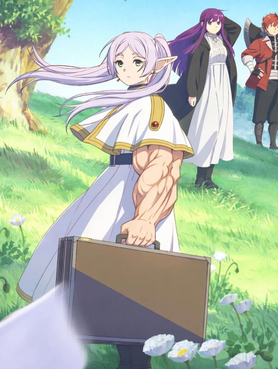 Вы не замечали, что фрыня это аниме от девочек для девочек? Это комфортный слайс оф лайф где девчонки путешествуют, побеждают, не подвергаются сексуальному харасменту со стороны ручного куколда Старка, сам Старк сабмиссивен и на вторых ролях. Фрирен это идеализированная мечта любой возрастной женщины о молодости, когда ты остаешься возрастной теткой, но при этом выглядишь и ведешь себя как ребенок за которым надо ухаживать, гладить по голове, обнимать, психологически поддерживать. В общем быть ДЕВАЧКАЙ за которую все решает мужик, но без патриархата. Хотя по логике реального мира именно Фрыня должна быть опекуном за малолетками, но выходит наоборот.